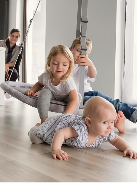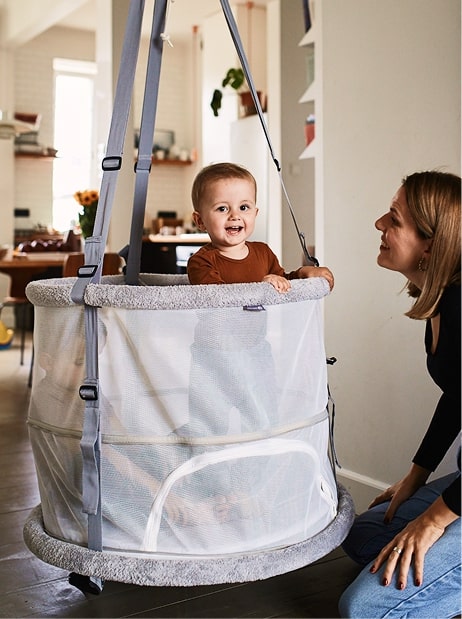 Konstrukcja została tak doskonale wyprofilowana, że dziecko samo może wprowadzić ją w ruch. Zapewnia rodzicom chwilę spokoju, a maluszkowi pomaga w rozwoju czucia głębokiego i poznawaniu swojego ciała.