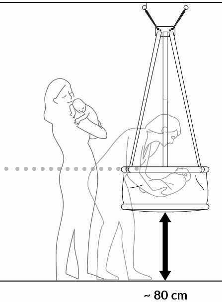 Praktycznym wyznacznikiem dla ustawienia odpowiedniej wysokości kołyski jest ustawienie jej górnej krawędzi na wysokości bioder matki, co zwykle wynosi około 80 cm nad podłogą.