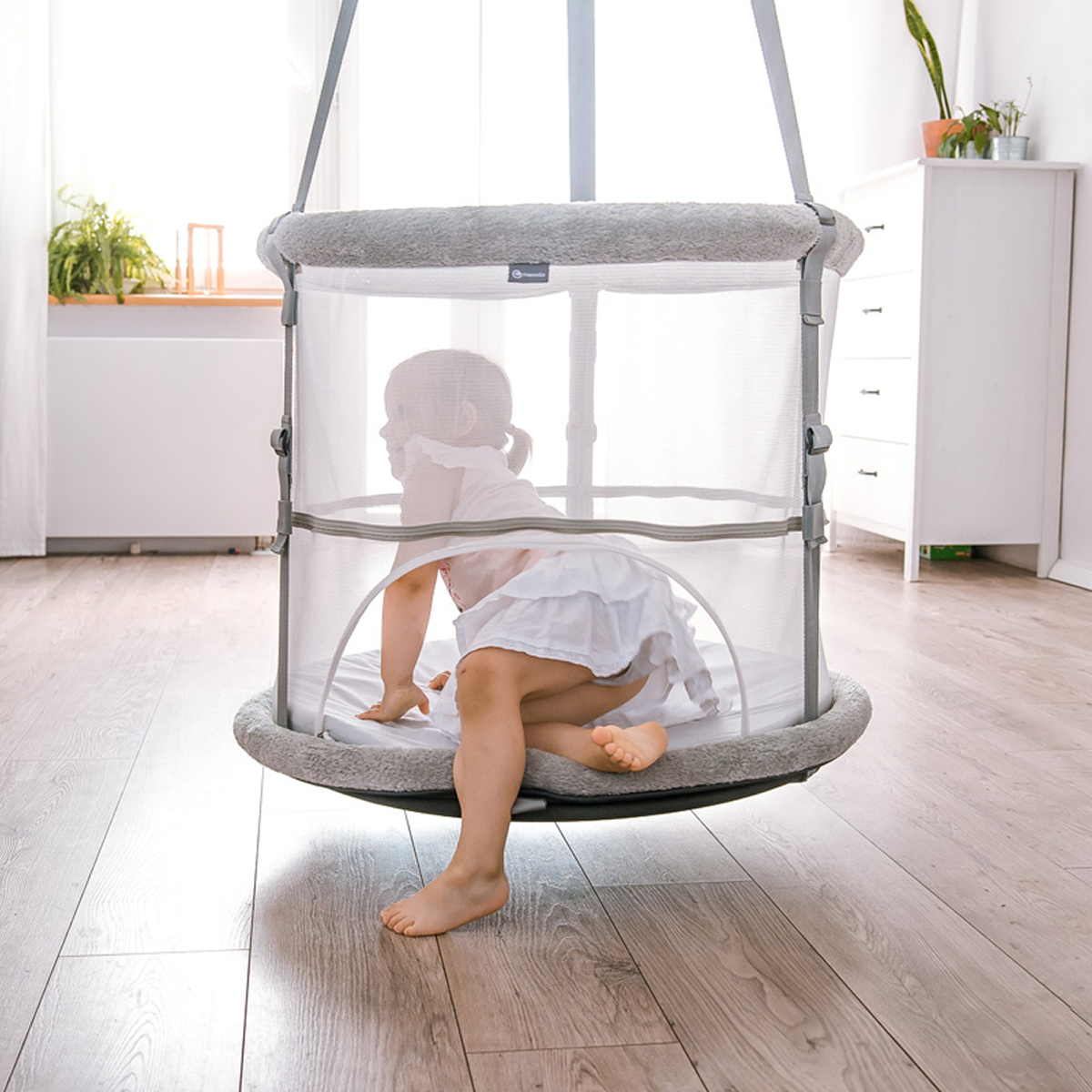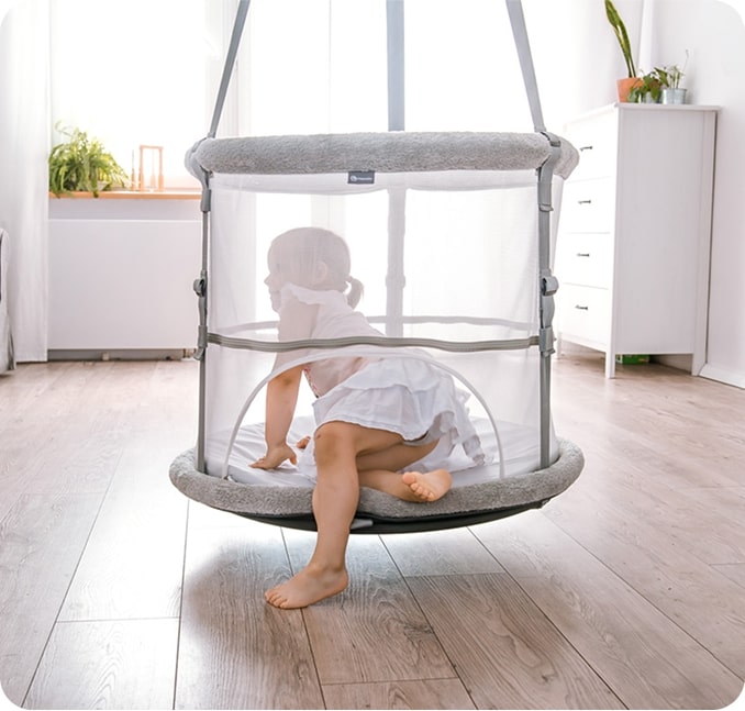 Memola rośnie razem z Twoim dzieckiem i dopasowuje się do każdego etapu rozwoju — od kołyski, przez kosz sensoryczny, aż po huśtawkę do użytku w domu.