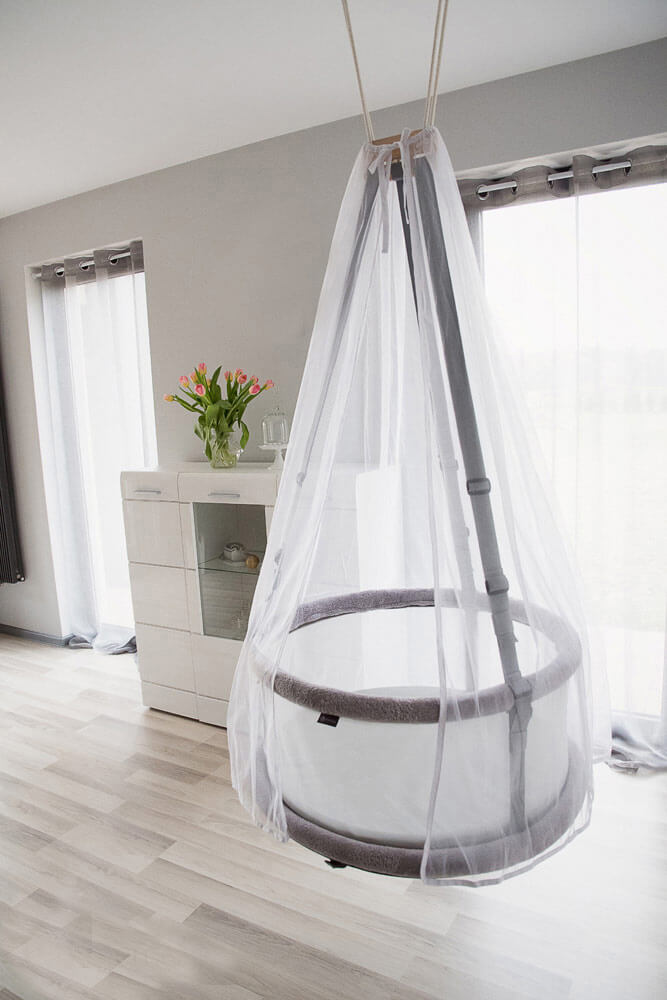 Moskitierę można zamontować pod zasłonką dedykowaną do Memoli – razem tworzą spójny, estetyczny komplet.