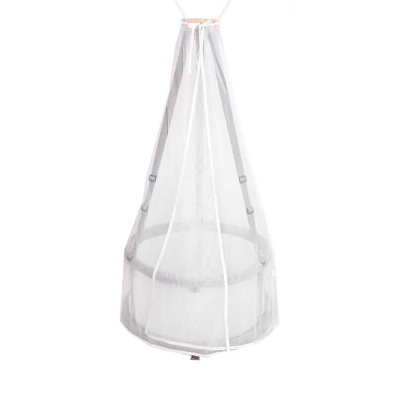 Moskitiera Memola chroni dziecko przed insektami i daje delikatną, miękką poświatę. Idealna na lato – gdy śpisz przy otwartych oknach lub używasz Memoli na tarasie czy w ogrodzie. Wykończona bawełnianą lamówką, dzięki czemu trzyma kształt i elegancko komponuje się z zasłonką.