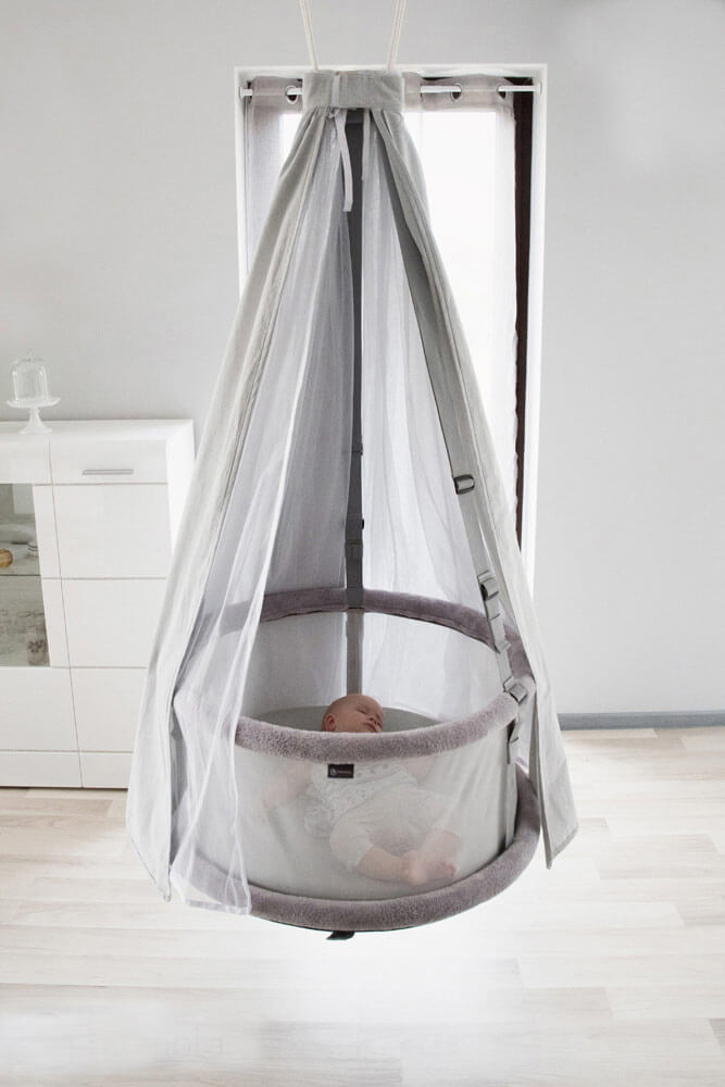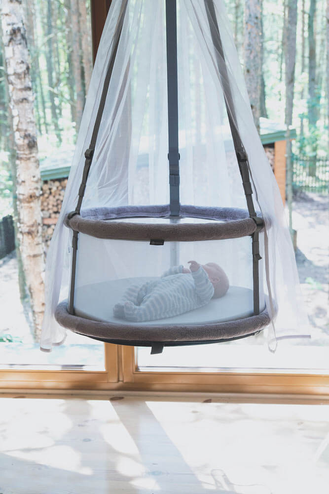 Moskitiera osłania dziecko przed owadami w letnie dni, a jednocześnie tworzy przyjemną, miękką poświatę. To praktyczne rozwiązanie, kiedy Memola stoi przy otwartym oknie lub jest używana na zewnątrz.