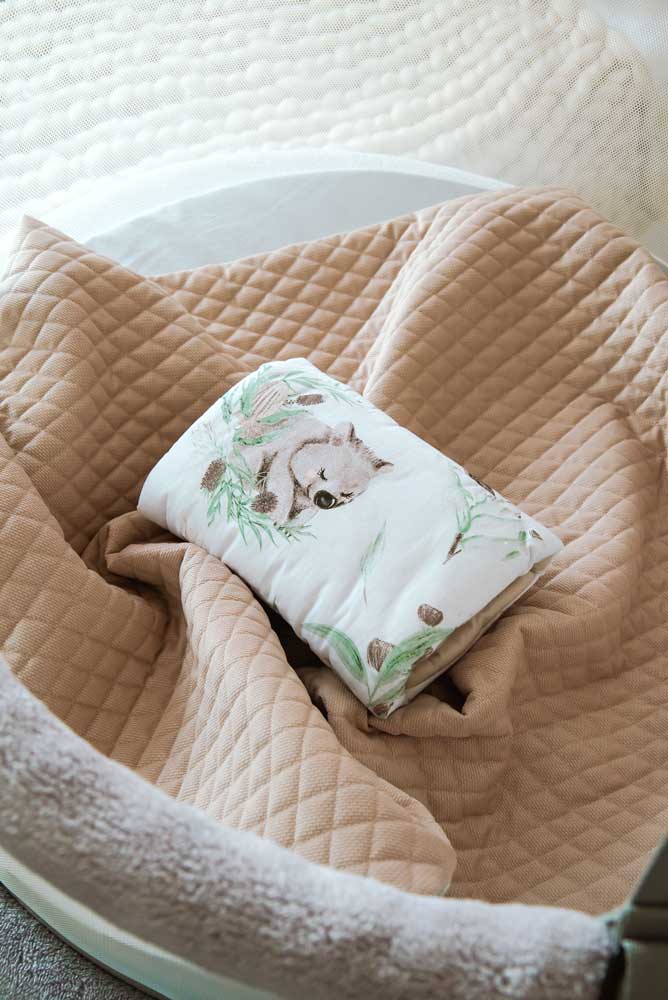 Mufka pochodzi od MimiNu by Kieczmerski — polskiej marki szyjącej z polskich tkanin. Wybraliśmy ją jako uzupełnienie do Memoli, bo spełnia nasze standardy jakości.