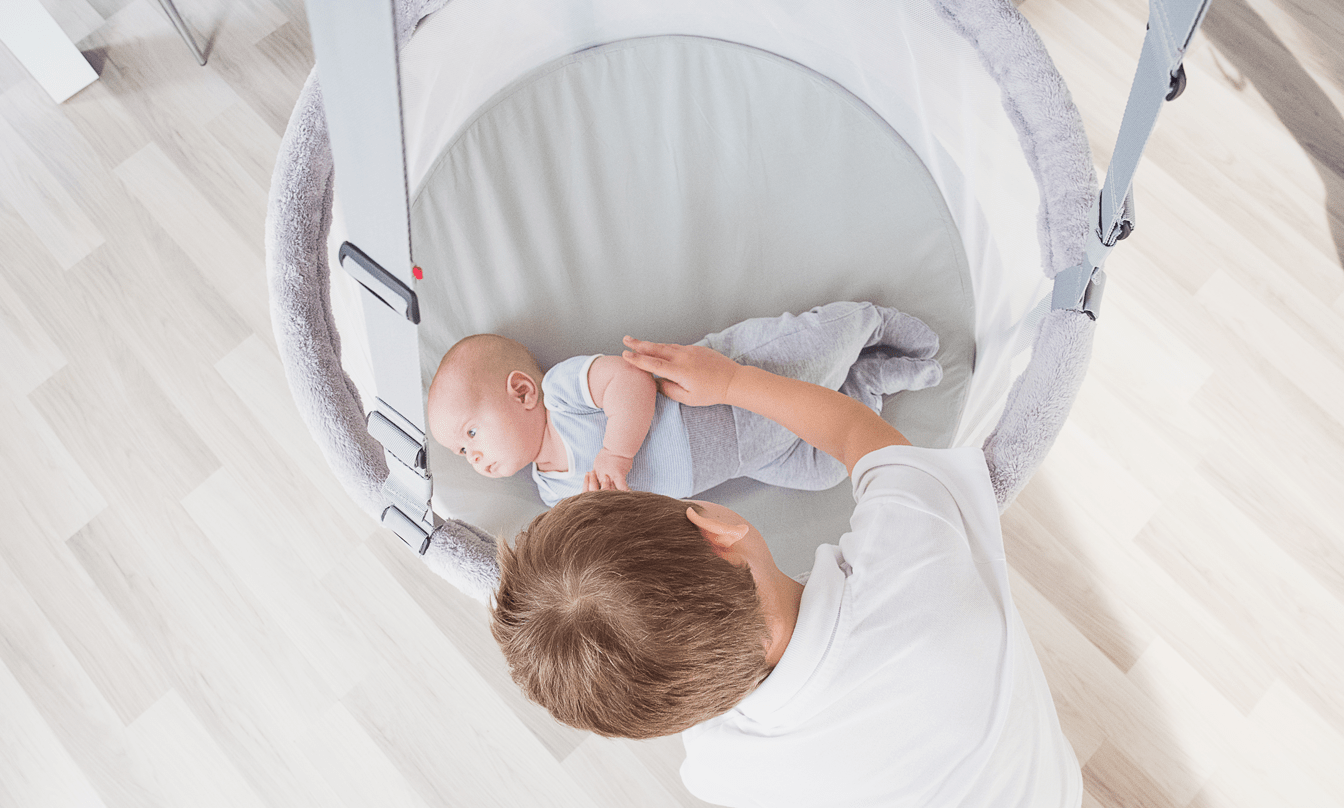 Kołysanie jak w brzuchu mamy reguluje układ nerwowy, pomaga szybciej zasypiać i przedłużać drzemki. Mniej stresu, więcej odpoczynku — dla dziecka i dla Ciebie.